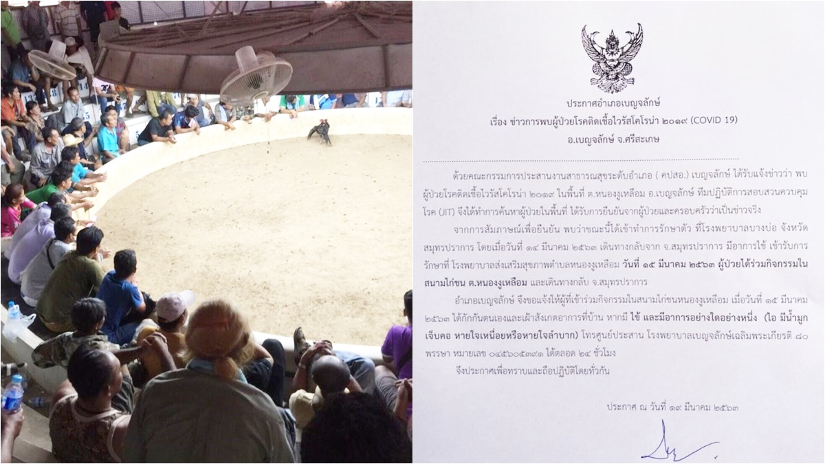 ยืนยันข่าวจริง! อำเภอเบญจลักษ์ผวาออกประกาศด่วน ติดโควิดไปโผล่สนามไก่ชน!