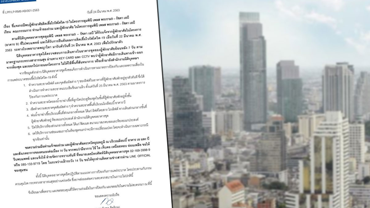 ลุมพินี พระราม9 แจงปมพบผู้ติดเชื้อ โควิด ขอผู้พักอาศัยสังเกตอาการ 14วัน